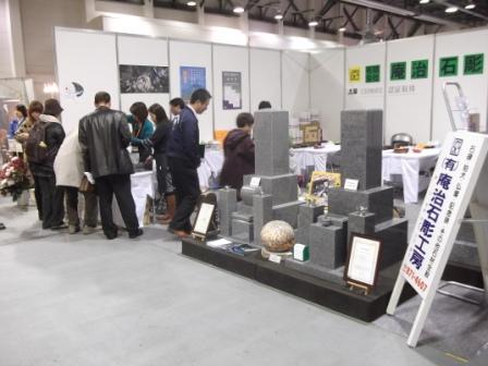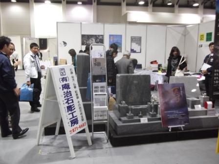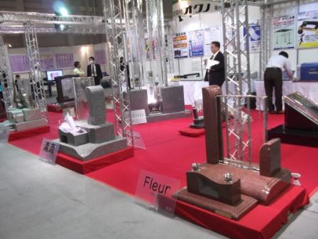 今回の展示会 全国団体の日本石材産業協会主催だけに 日本各地の石材業者・輸入商社と関連業者が出店し 様々な石種と墓石のデザインを競っています。