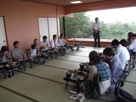 朝9時から夕方5時までみっちりと、昨年度 の振返りから始まり、今年度の重要課題の 具体的推進方法を部門ごとに検討し、発表を 行った後、「人間力向上」についての研修を 行い、最後に各自が当日の感想を述べたあと 花樹海に移動して懇親会を行いました。