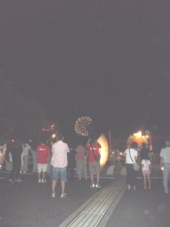 「むれ源平 石あかりロード」からも庵治町の 夏祭りの打ち上げ花火を見ることができました。