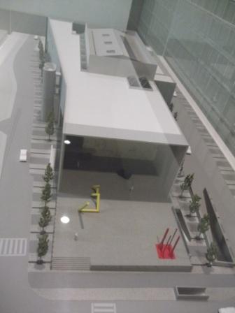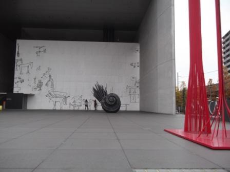 猪熊弦一郎美術館の入り口には巨大なオブジェ と壁一面に大理石の壁画が描かれています。