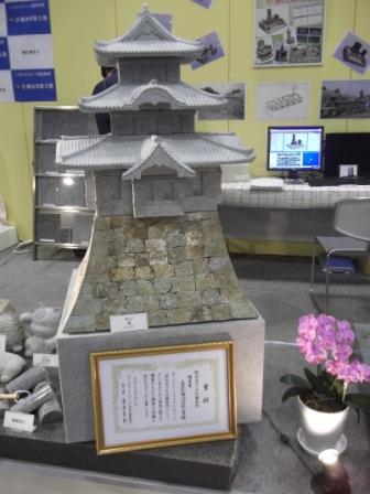 弊社ブースで出展の伝統工芸士 平川博氏 制作の「城」が彫刻及び石灯籠部門で優秀賞 に選ばれました。