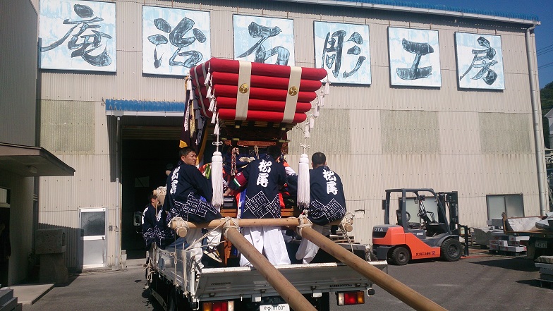 多い時にはちょうさが5台ほど奉納 されていましたし、奴行列、獅子舞 など庵治町内の各自治会から 沢山の奉納物で賑わっていました が今では・・・・・