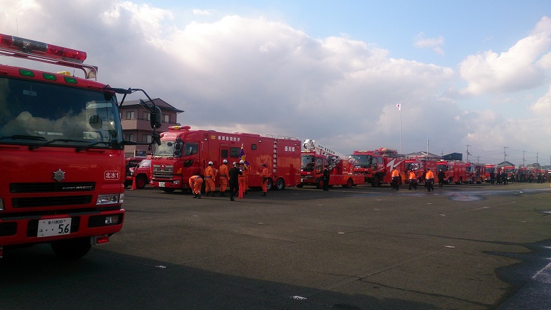 消防車も各地から集結しています |