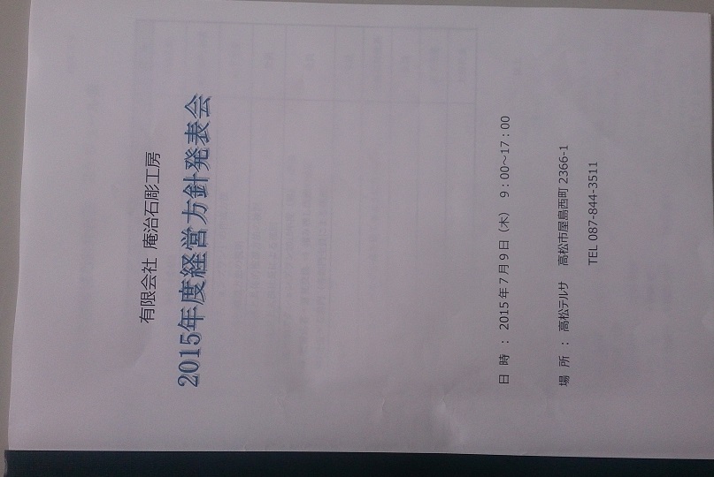 昨日は、朝から高松テルサにて2015年度 の経営方針発表を行いました。