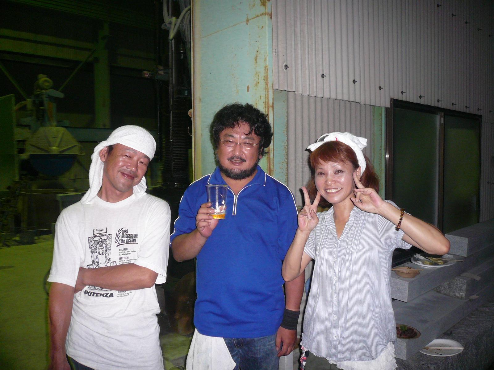 【真ん中のおひげの人はこのHPを作成してくださった秋山くまさん 左は木村工場長 右はうっちゃんです】
