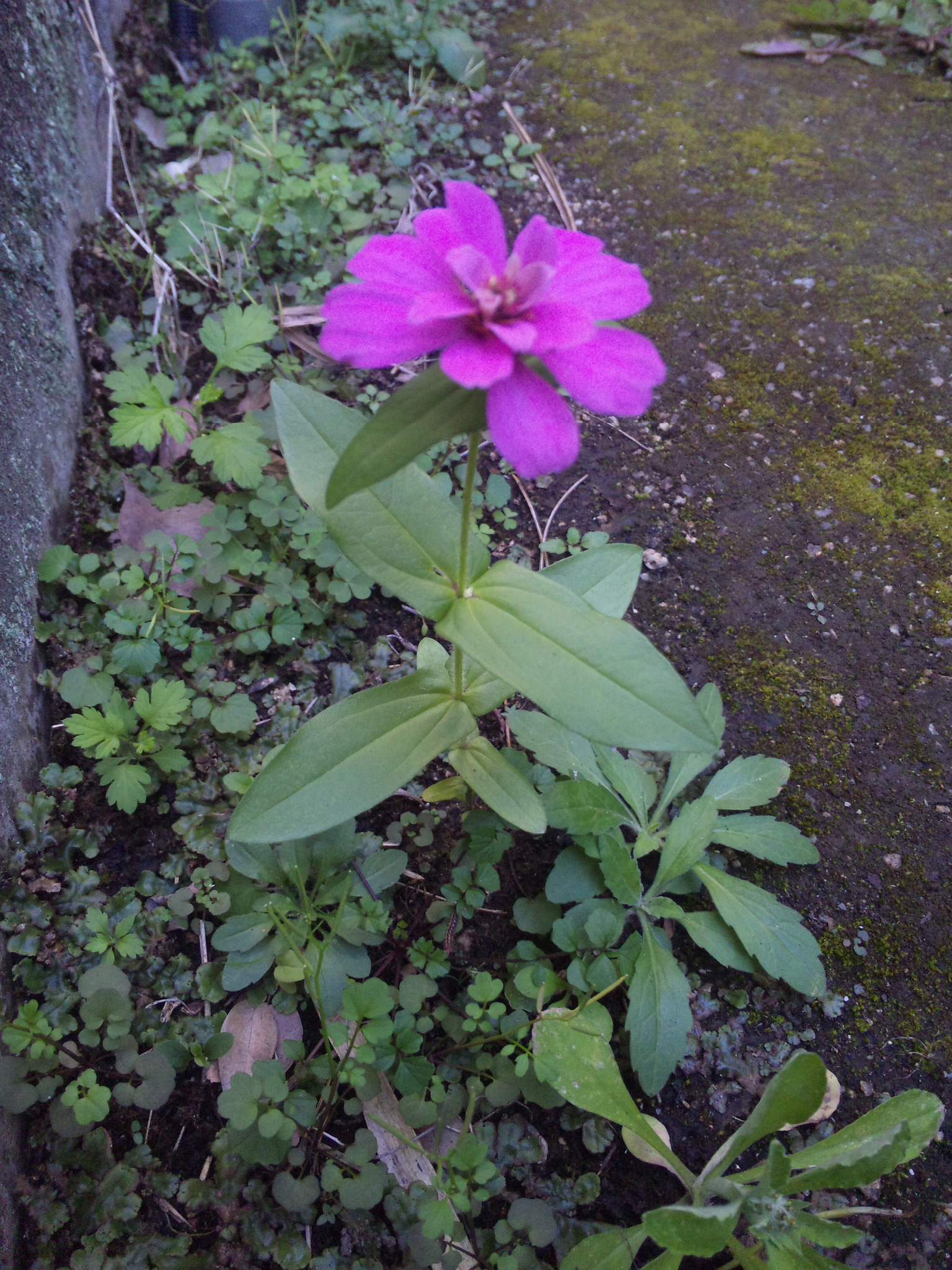 工場の前でひっそりと咲いている、一輪のコスモスを見つけました。 前出の「ゆれるコスモス」の場所から種が飛んできたのでしょうか?