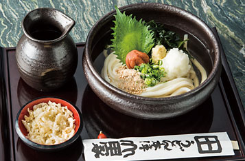 冷たく冷やしたかけだしに大根おろし、南高梅の梅干し、 鳴門産わかめ、高知県産黄金しょうがをトッピング。