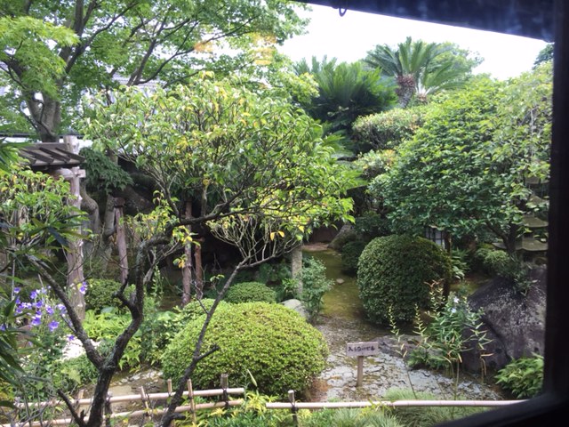 窓からの庭の眺め。 よく手入れされていて、見ていて癒されます。