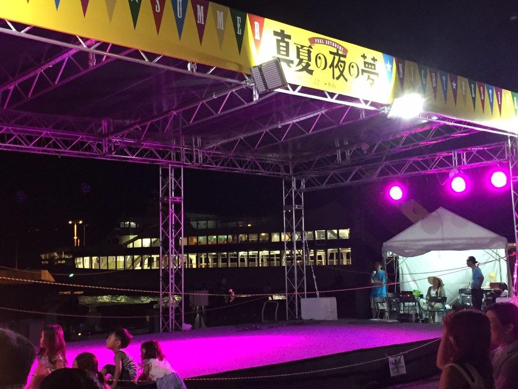 今年は残念ながらミュージッククルーズには行けませんでしたが 火の付いたバーのジャグリングなど 夜の海の背景を生かしたパフォーマンスを観ることができました。