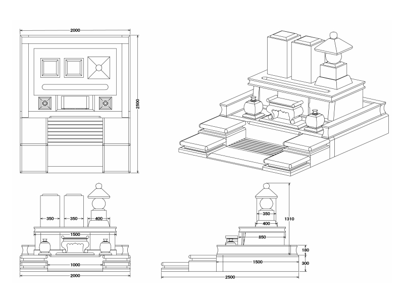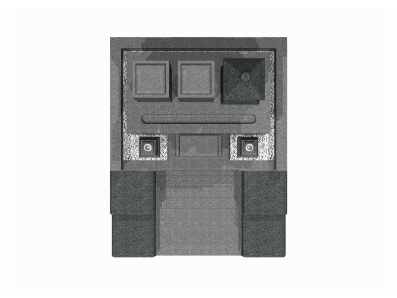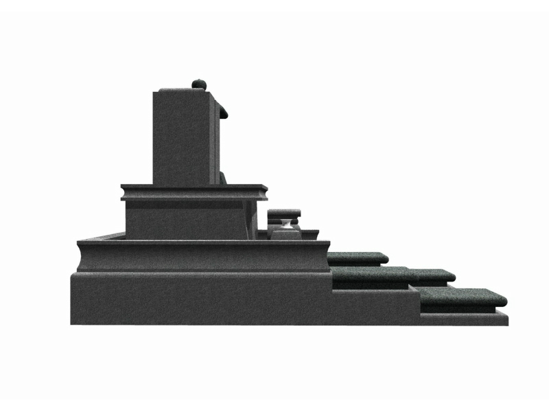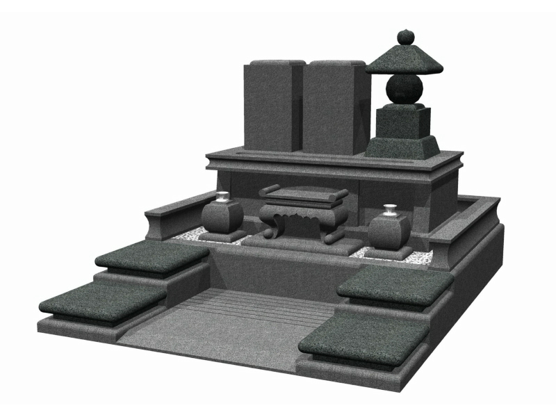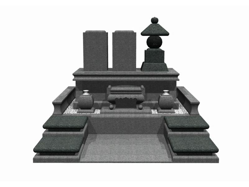 お墓と外柵に同じ形や同じ石種を使うことによって統一感をもたせ、色の濃い石を配置することによってアクセントを付けました。